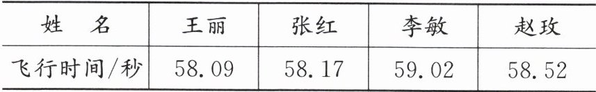 答案:根据飞行时间越短,成绩越好,比较各选手的飞行时间: