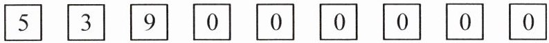 $\boxed{5}\boxed{3}\boxed{9}\boxed{0}\boxed{0}\boxed{0}\boxed{0}\boxed{0}\boxed{0}$