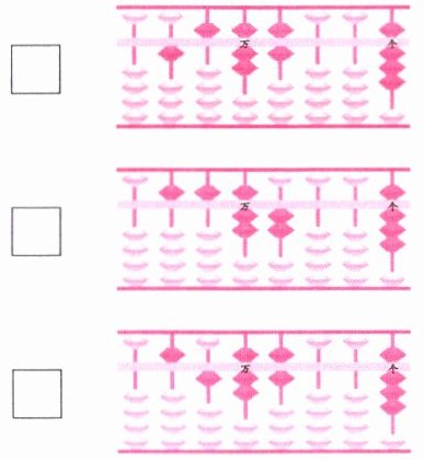(2)算盘上表示的数是5176008,这个数在算盘上的表示是: