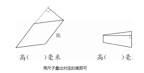 1. 画出每个图形底边上的高,再量一量。