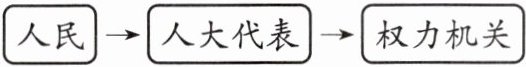 根据图示“人民→人大代表→权力机关”,结合教材知识,人民通过民主选举产生人大代表,人大代表组成各级国家权力机关。A选项正确;国家权力机关代表人民行使国家权力,B错误;人民通过人大代表间接行使国家权力,C错误;人大代表代表人民行使国家权力,但非“全部”,D错误。