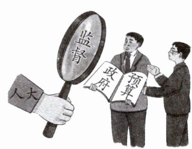 漫画中展示了人大通过放大镜对政府的预算进行监督,这体现了人大依法行使监督权,以维护人民利益,说明各级政府机关均受人大的监督。题干中并未涉及人大代表的产生方式及人大常委会的重大事项决定权,因此③④与题意无关。