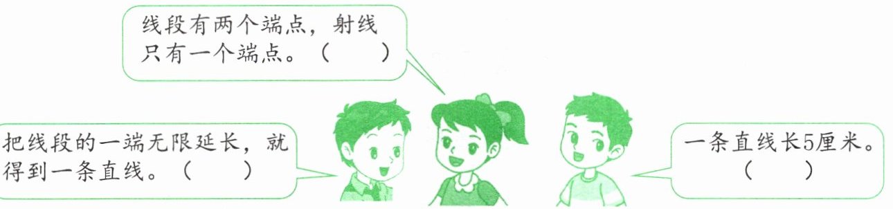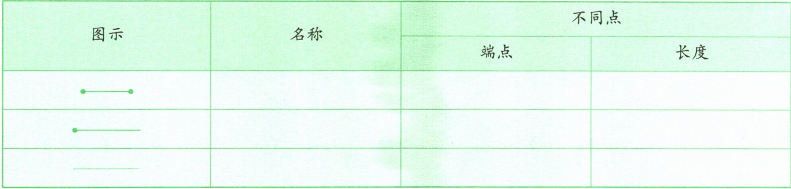 1. 想一想,线段、射线和直线有什么不同,填一填。