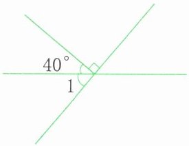 由图可知,一个平角为180°,其中一个角是40°,∠1与40°角组成直角,所以∠1=90°-40°=50°。
