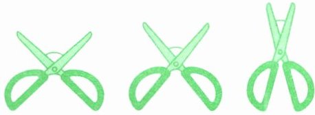 6. 把剪刀慢慢合拢,角的大小在变化,可以看出:角变得越来越(