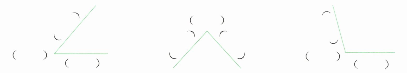 3. 在点子图上分别画一个比图中的角小的角和一个比图中的角大的角。