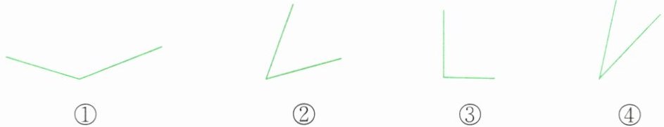 画比图中角小的角:从一点出发,向右画一条水平线段,再向上画一条较短斜线段,使夹角小于图中直角。