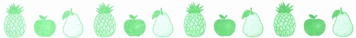 圈一圈:(将第一个菠萝、苹果、梨圈为一组,第二个菠萝、苹果、梨圈为一组,第三个菠萝、苹果、梨圈为一组,第四个菠萝、苹果、梨圈为一组)