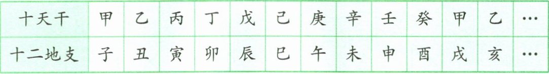 5. 我国古代采用干支纪年法,即分别用十天干和十二地支两两相配组成六十组来记录年序。下表是十天干和十二地支的组合方式。