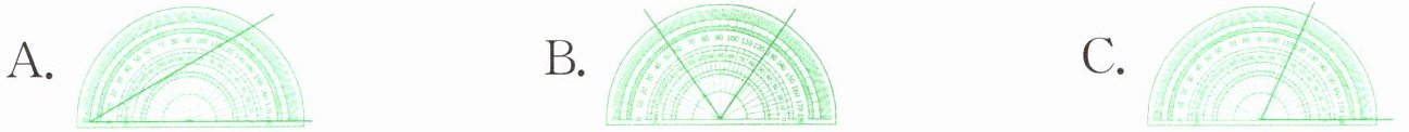 )$ ^{\circ} $。(3) 用量角器量角时,量角器的中心要和(