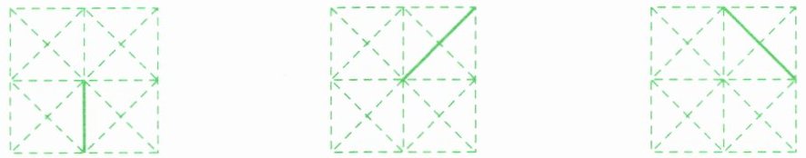 第三幅图:描实左侧指向实线段的虚线段(正左方向和正右方向两条)。