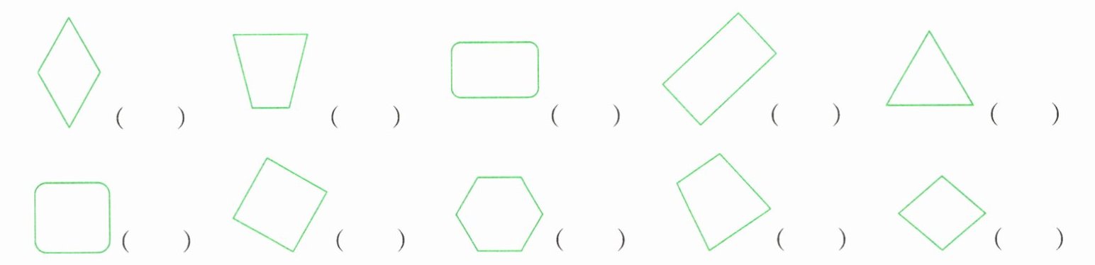1. 下面图形中,是长方形的在括号里画“$□$”,是正方形的画“$□$”。