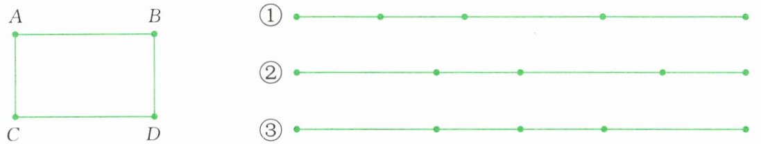 4. 如下图,长方形由铁丝围成,先在 A,B,C,D 拐弯处标上记号“$\bullet$”,再从其中一个拐弯处把铁丝剪断拉直,拉直的铁丝可能是下面的(