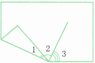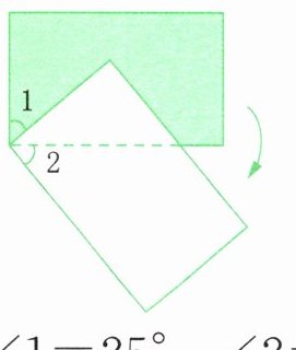 5. 下图表示一张长方形纸折起一个角。已知∠1=25°,∠2=∠3,∠2是多少度?