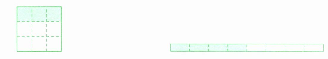 观察图形:正方形被平均分成9份,涂色部分占3份。若将图形重新平均分成3份(横向或纵向合并),涂色部分占1份。