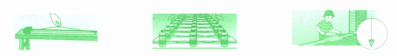 4. 在下列生活、生产现象中,可以用“两点确定一条直线”来解释的在括号里画“√”。